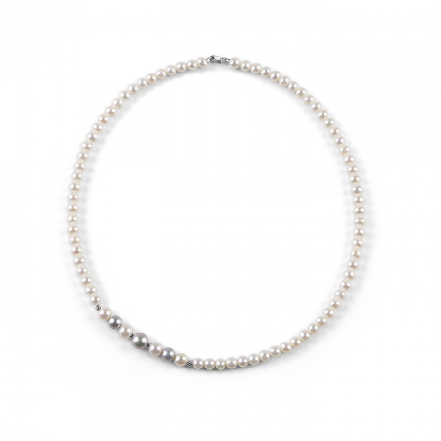 Collana Bliss Paradise perle bianche e grigie 5,5/8 mm