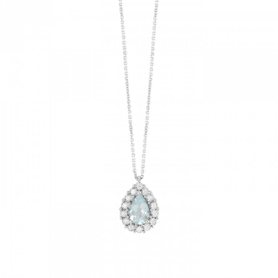 Collana Bliss Stephanie in oro bianco con diamanti e acquamarina taglio goccia