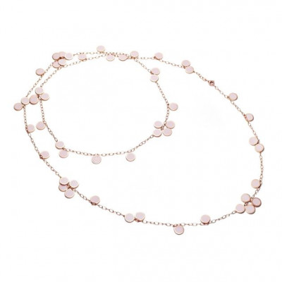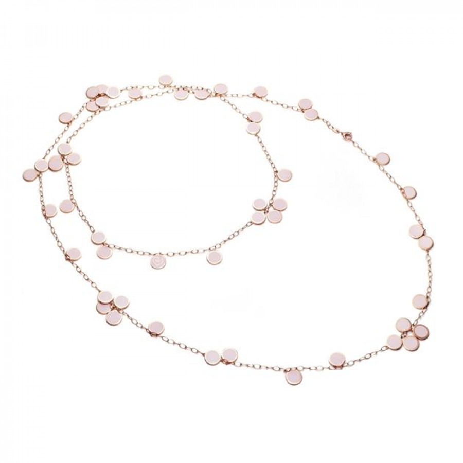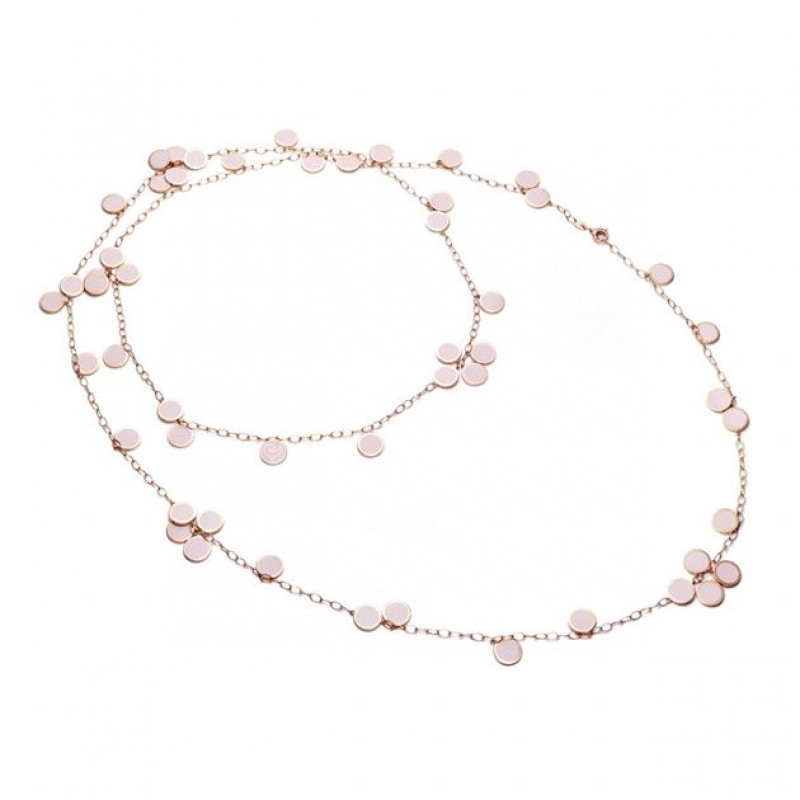 Qui troviamo la collana lunga appartenente alla collezione Chantecler Paillettes in oro rosa 18kt e smalto rosa cipria.
