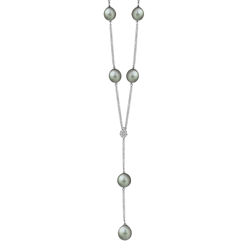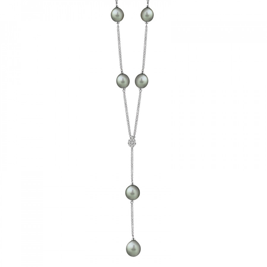 Collana in oro bianco con diamanti e perla di Damiani della collezione Ninfea.