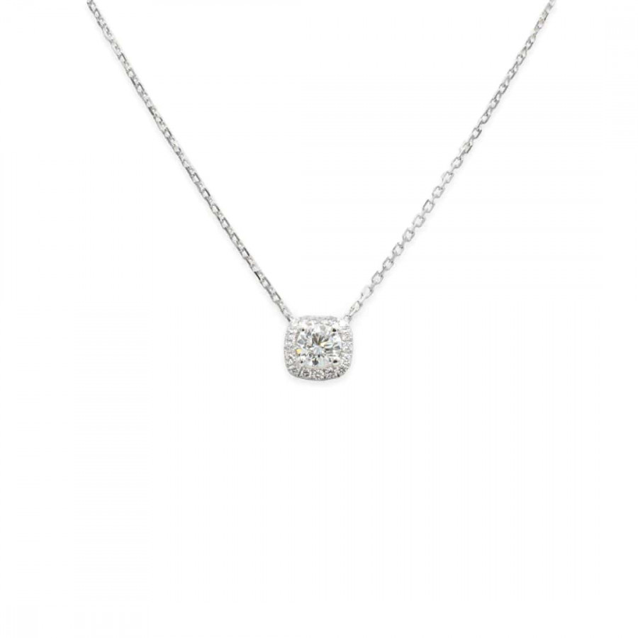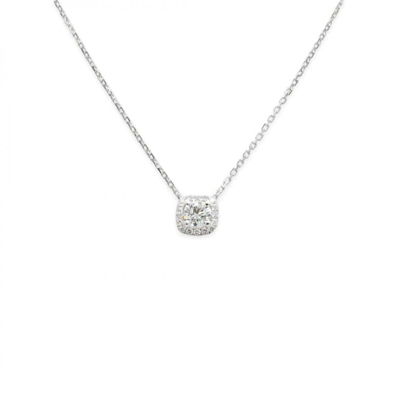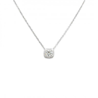 Collana in oro bianco 18k con diamante centrale e halo di diamanti brillanti.