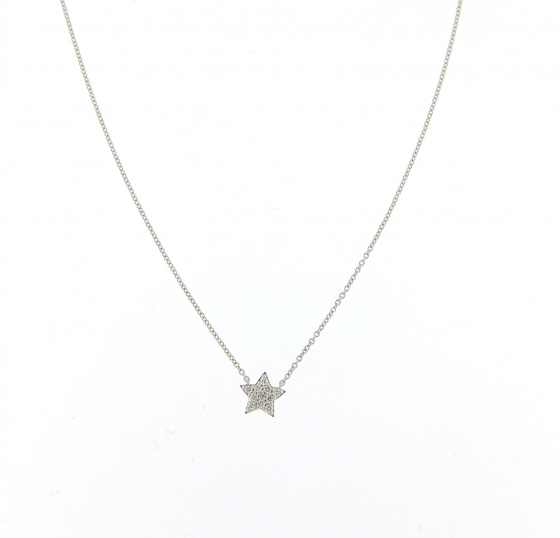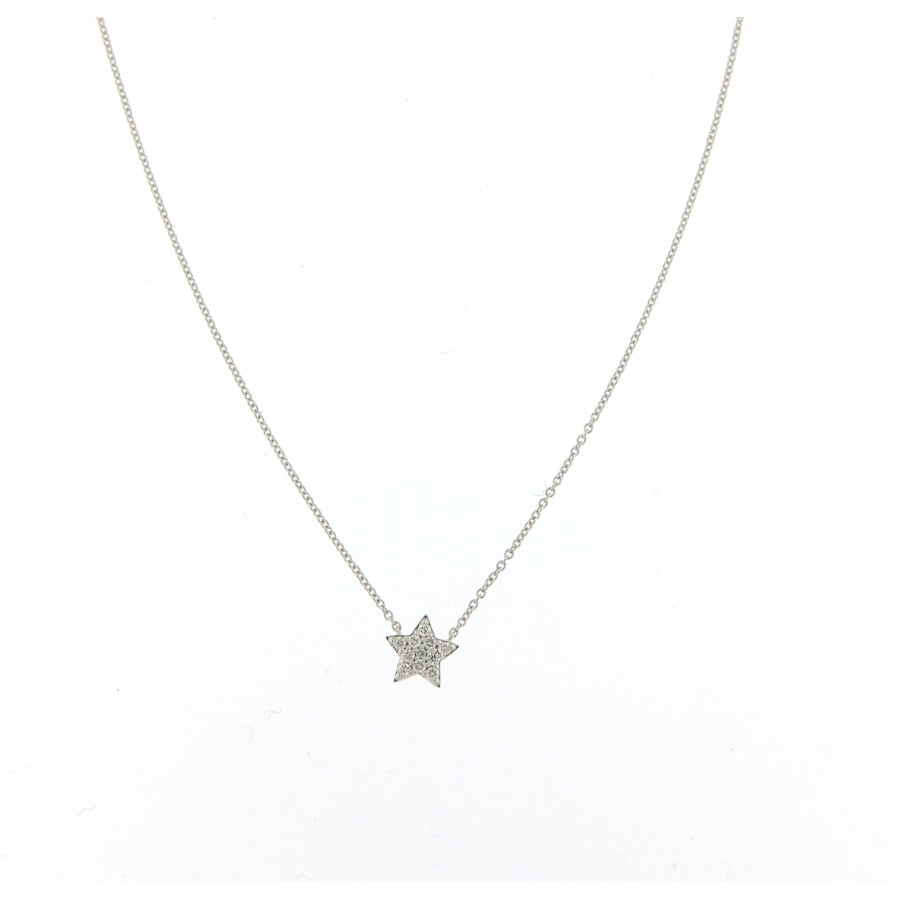 Girocollo Crivelli stella diamanti bianchi ct 0,09 e oro bianco 750%. Questa collana è composta da un’anima di catena in oro bianco e pendente a forma di stella di diamanti bianchi. Design minimal ma grande attenzione al dettaglio e la lavorazione tipica dell’alta gioielleria, impreziosiscono questa collana dall’eleganza senza tempo.