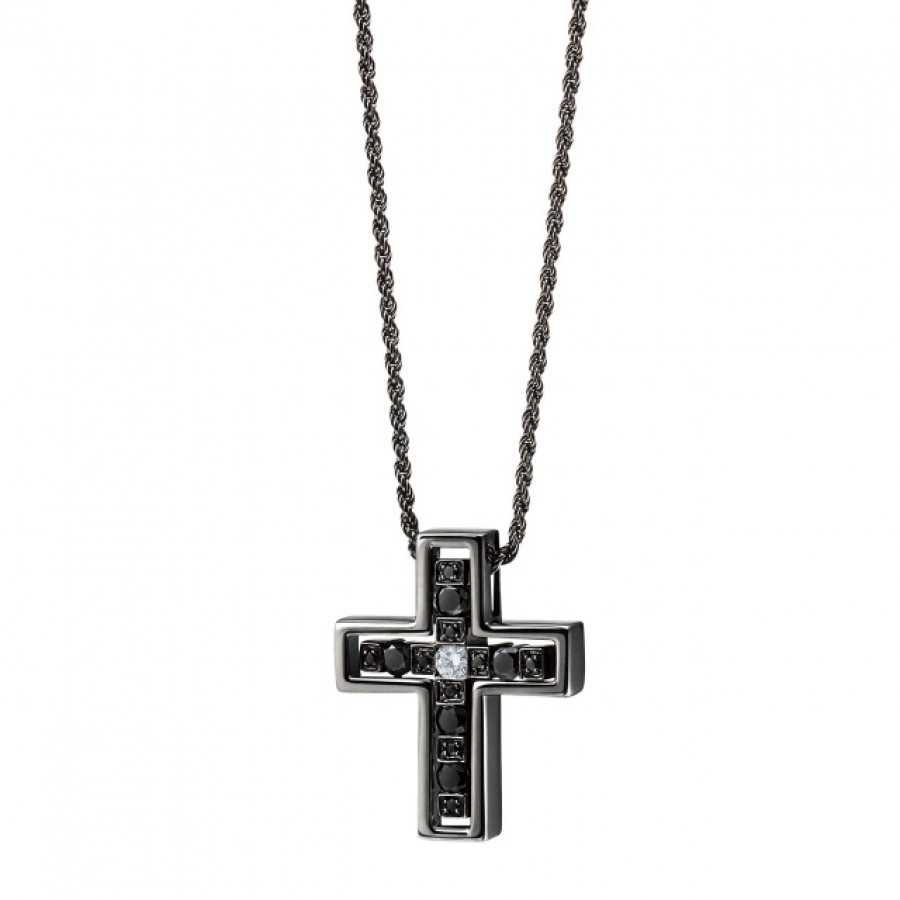 Collana Croce Belle Epoque oro brunito nero e diamanti black