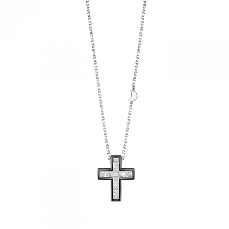 Collana Croce Belle Epoque oro bianco, oro brunito e diamanti