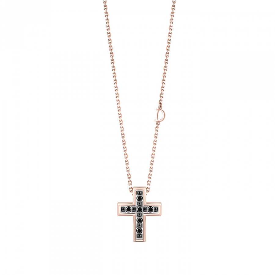 Collana Croce Belle Epoque oro brunito, oro rosa e diamanti black