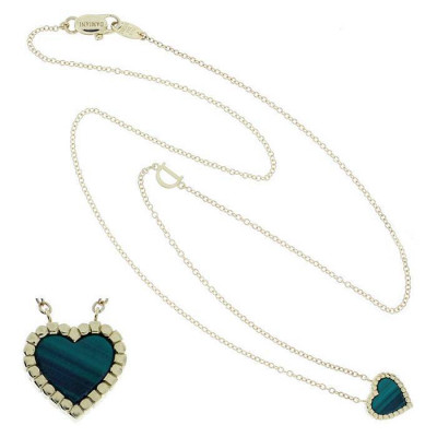 Collana in oro giallo 18kt, con ciondolo a forma di cuore in oro giallo 18kt, malachite e diamanti ct. 0,004 GH