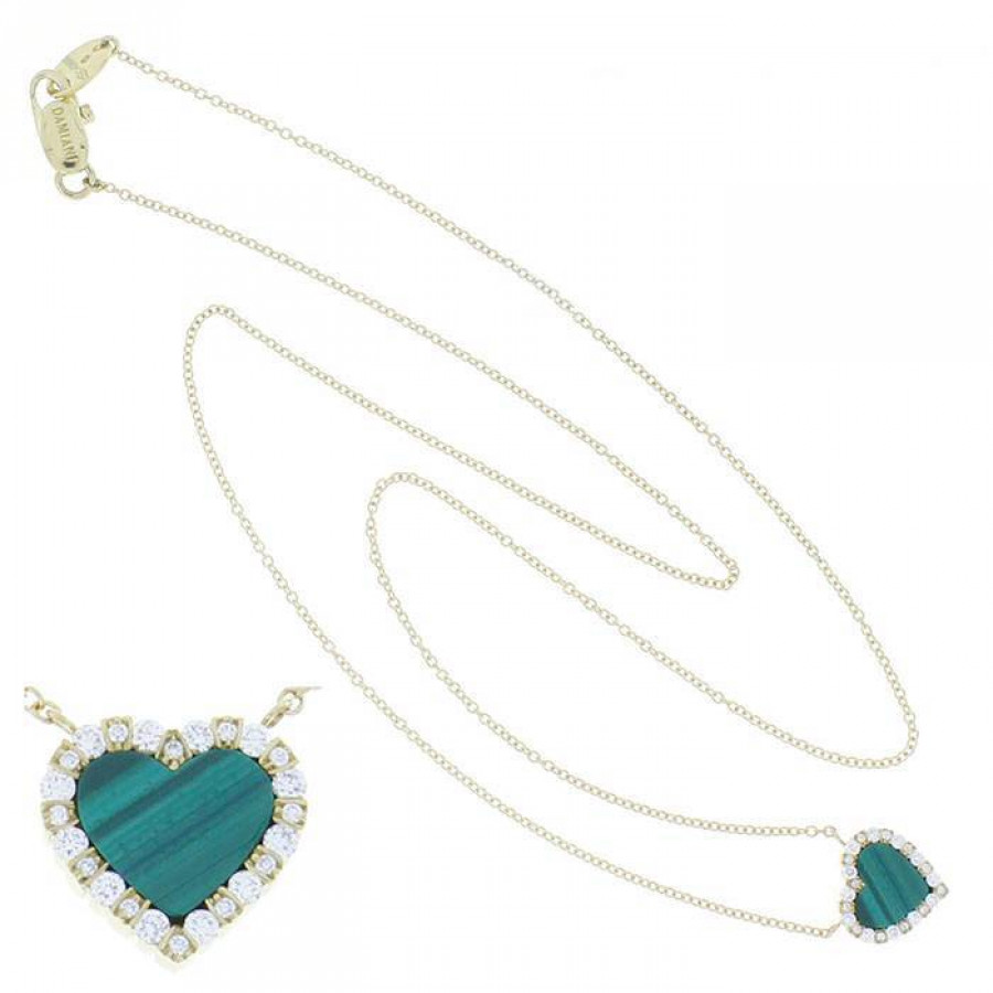Collana Damiani con ciondolo a forma di Cuore, in oro giallo 18 kt, malachite e diamanti, della collezione Belle Epoque.