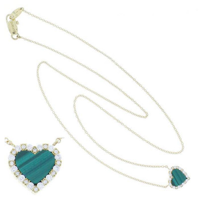 Collana in oro giallo 18kt, con ciondolo a forma di cuore in oro giallo 18kt, malachite e diamanti ct. 0,134 GH