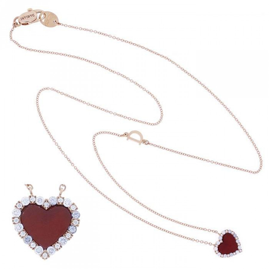 Collana Damiani con ciondolo a forma di Cuore, in oro rosa 18 kt, corniola e diamanti, della collezione Belle Epoque.