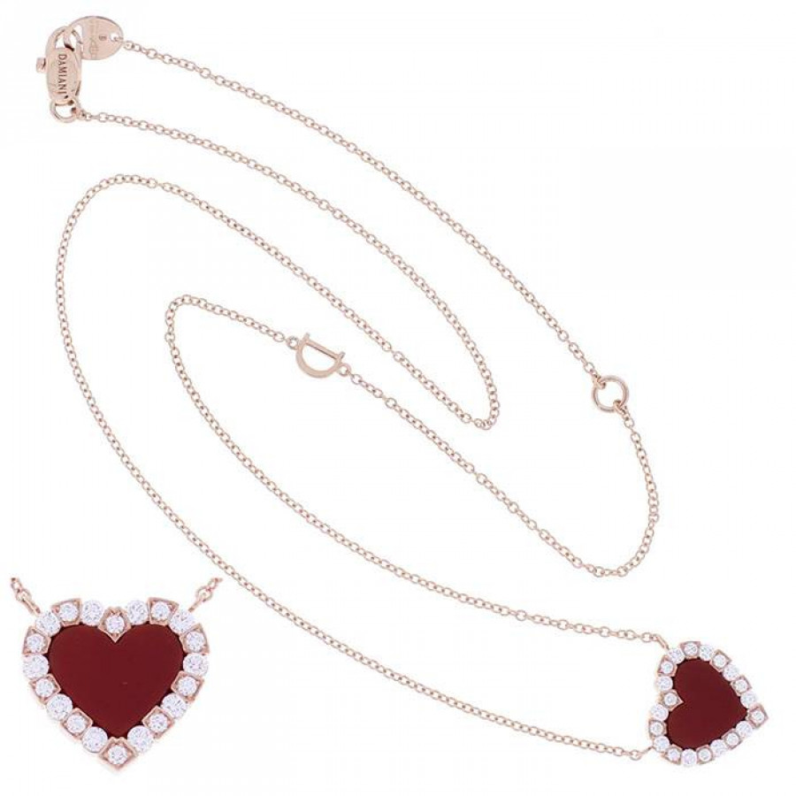 Collana Damiani con ciondolo a forma di Cuore, in oro rosa 18 kt, corniola e diamanti, della collezione Belle Epoque.
