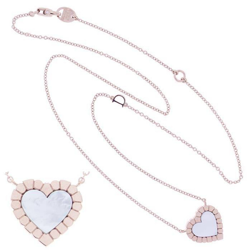 Collana Damiani con ciondolo a forma di Cuore, in oro rosa 18 kt, madreperla e diamanti, della collezione Belle Epoque.