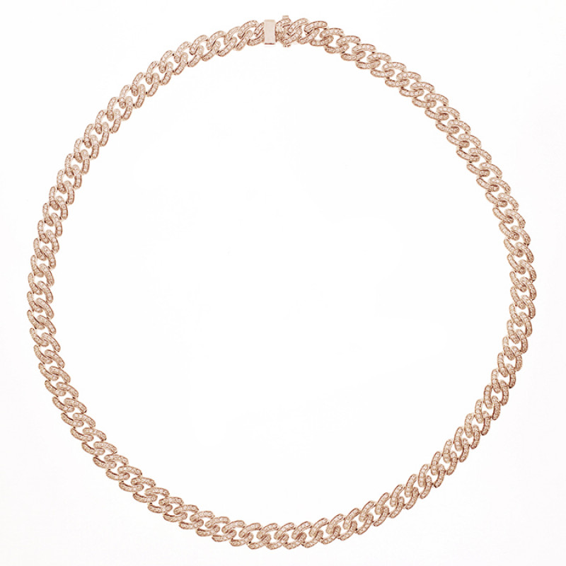 Collana in Oro rosa 18 kt con pavé di diamanti ct 4.8 taglio brillante rotondo, colore GH