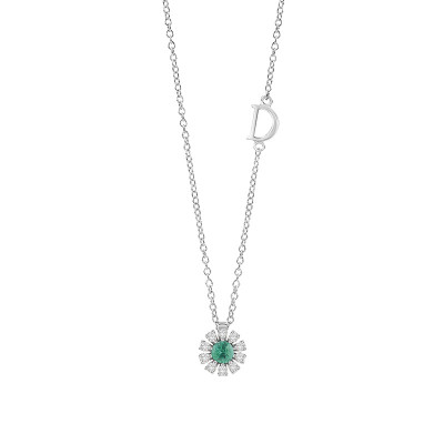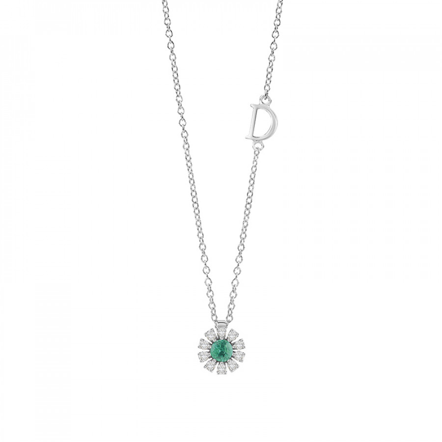 Collana in oro bianco con diamanti e smeraldo di Damiani collezione Margherita.