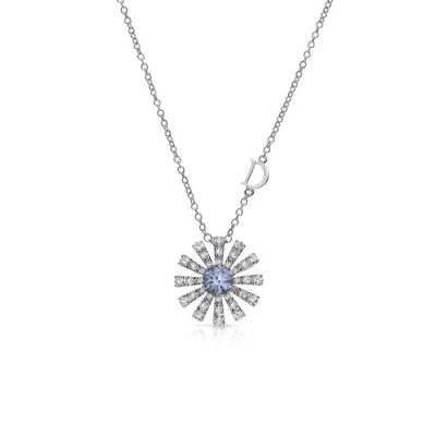 Collana Margherita in oro bianco, diamanti e acquamarina