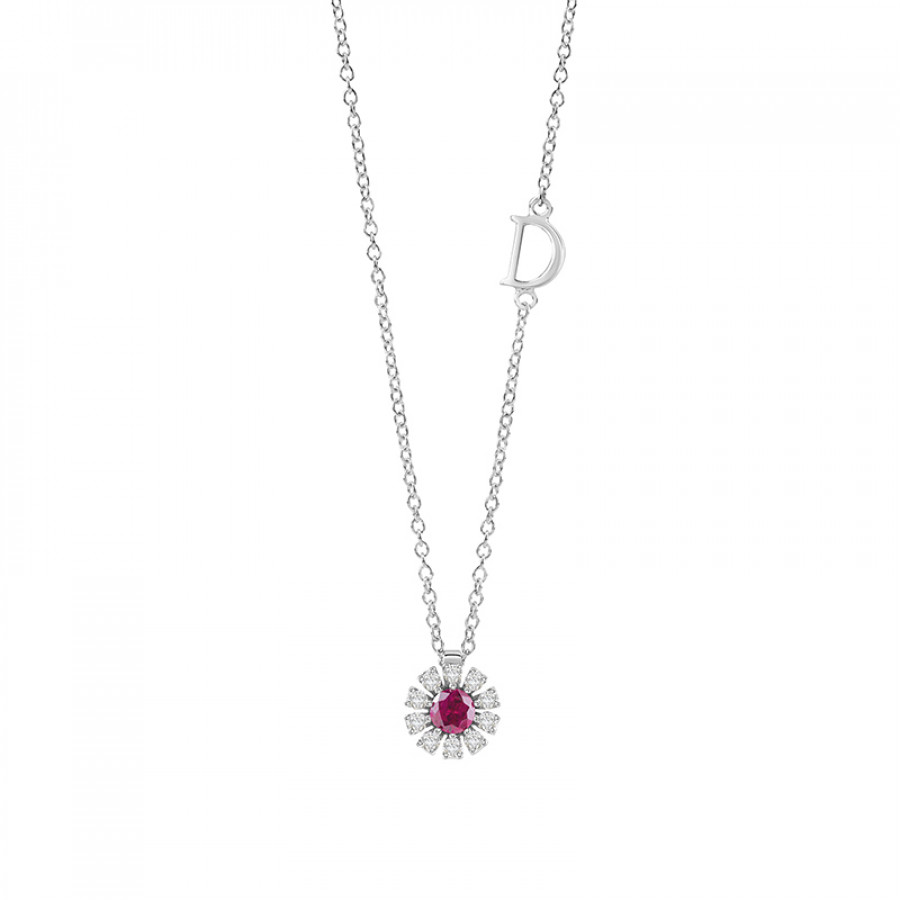 Collana Damiani Margherita in oro bianco con diamanti e rubino.