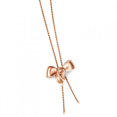 Dalla collezione Fiocco di Damiani, una collana in oro rosa e diamanti da 0.89 ct.