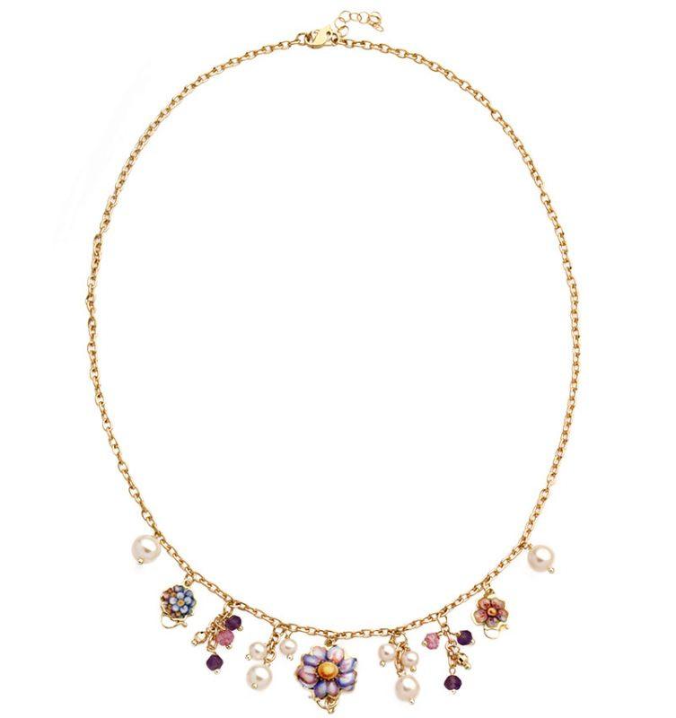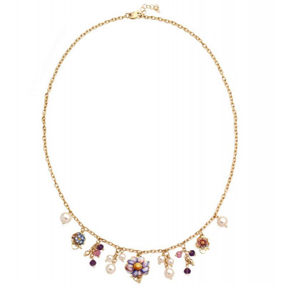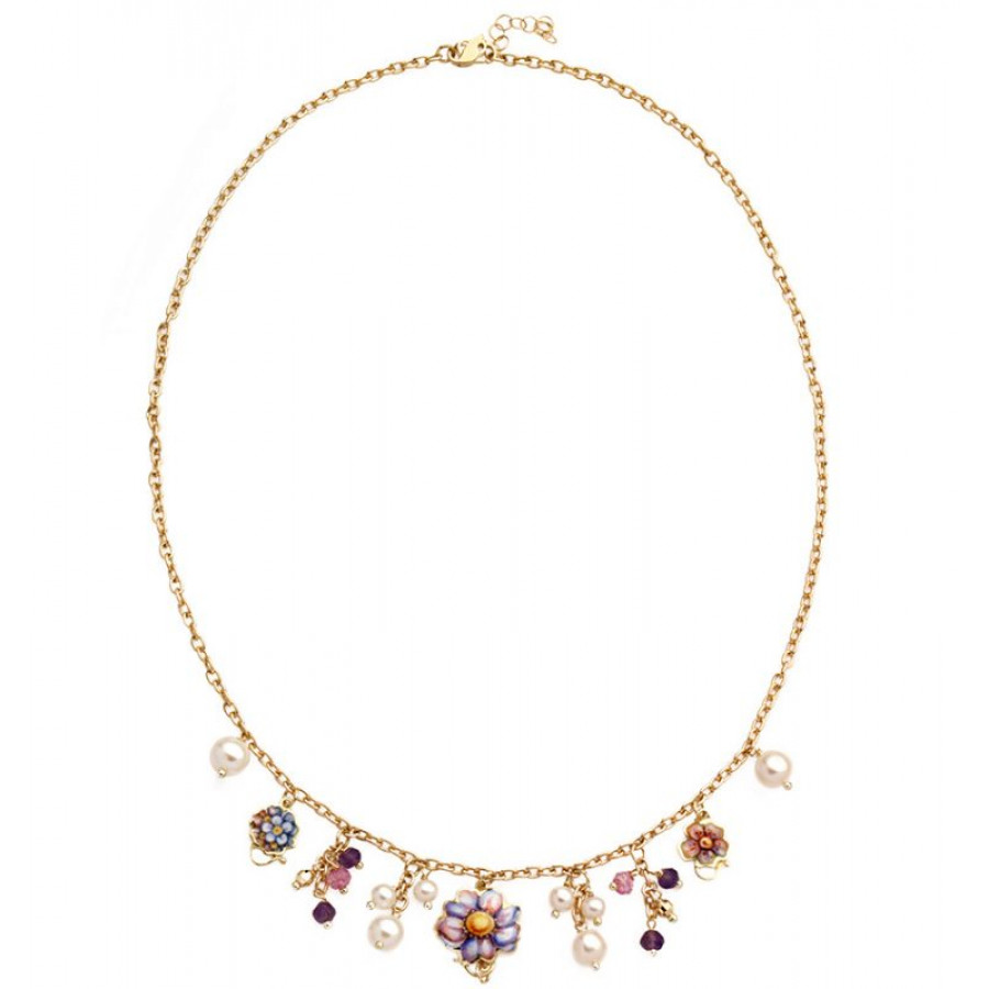 Collana Gabriella Rivalta in oro miniato Anemone Fiorellini Grandi Viola, collezione Fiori