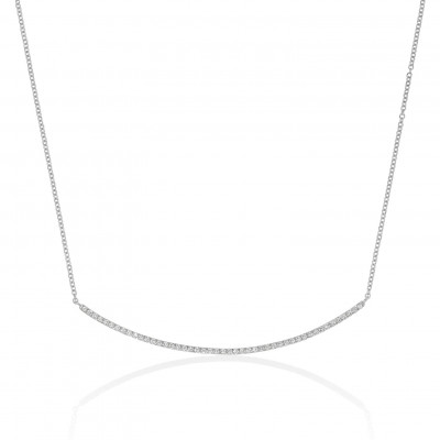 Collana con barretta rigida curva a filo in oro bianco 18k e diamante ct 0,56.