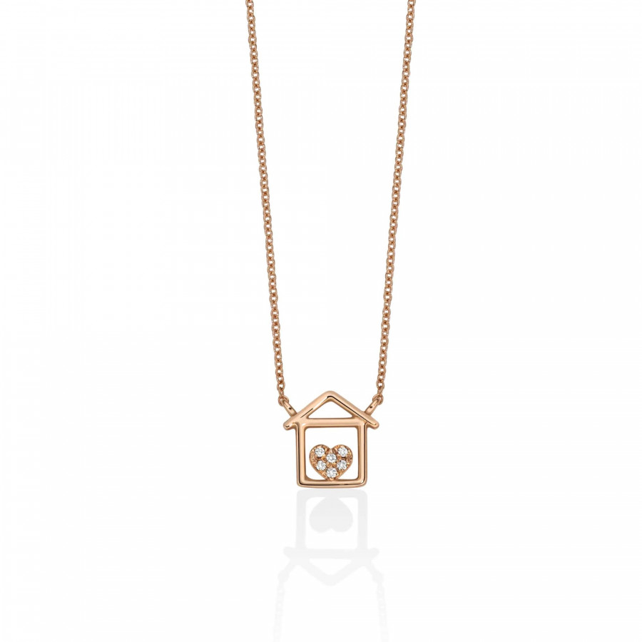 Collana Marco Gerbella Casetta in oro rosa e diamanti della collezione Piccole Gioie.