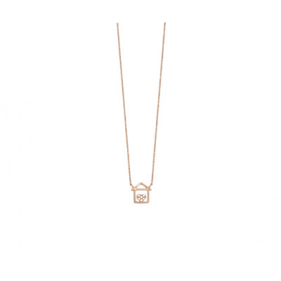 Una casa che custodisce al suo interno un cuore impreziosito da diamanti bianchi. E' questo il fil rouge della Collezione Il Cuore fa Casa. La collana con al centro la casa in filo d' in oro rosa 18 kt celebra in modo ricercato il calore e la certezza che solo una casa e una famiglia possono dare. Indossala da sola o abbinata ad altri gioielli della collezione Il Cuore fa Casa.