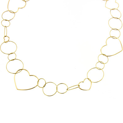 Collana Cuori e Cerchi a filo in oro giallo, peso 8.77 gr. cm 42