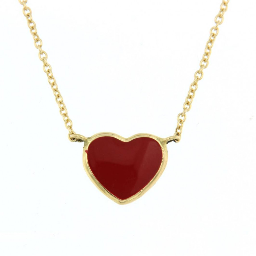 Collana Cuore a lastra in oro giallo 18k smaltato rosso