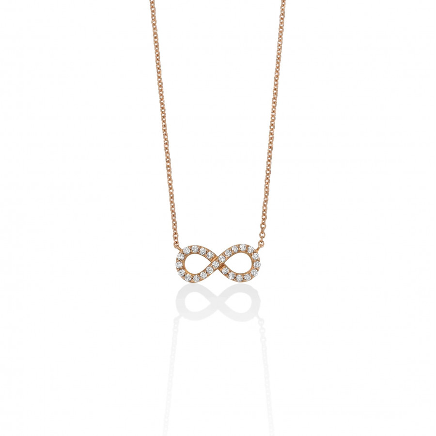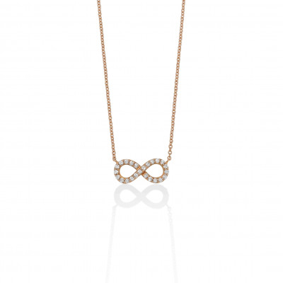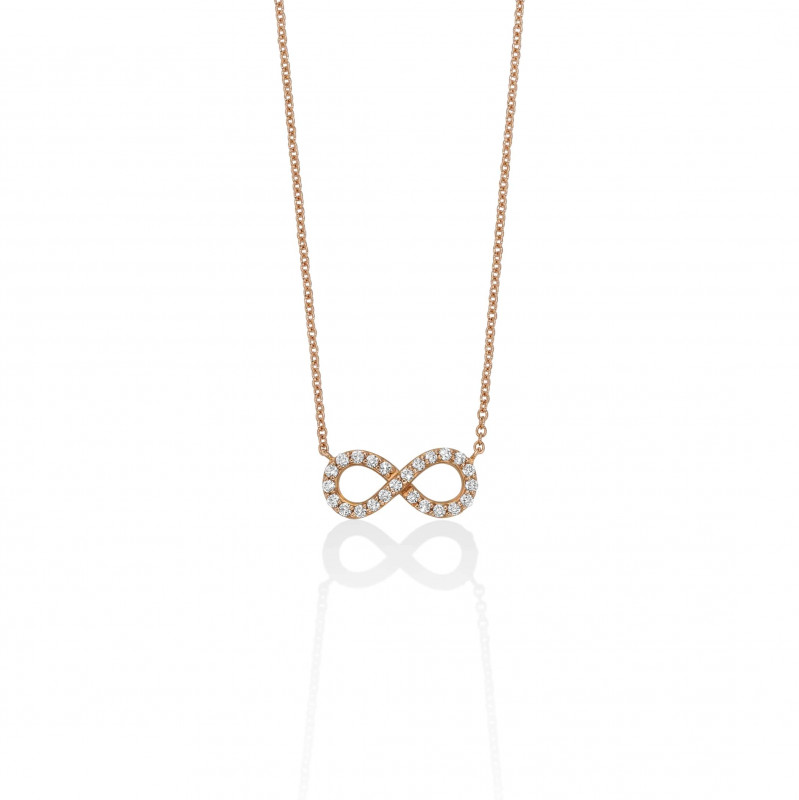 Collana con infinito a filo in oro rosa 18k e diamanti ct 0,20.