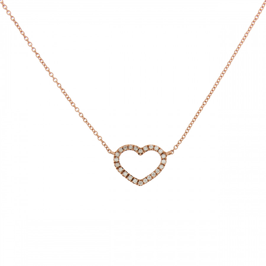 Collana cuore piccolo in oro rosa e diamanti 0.18 ct., 2.35 gr
