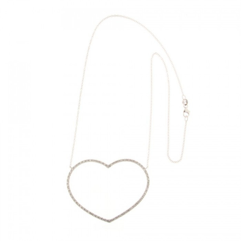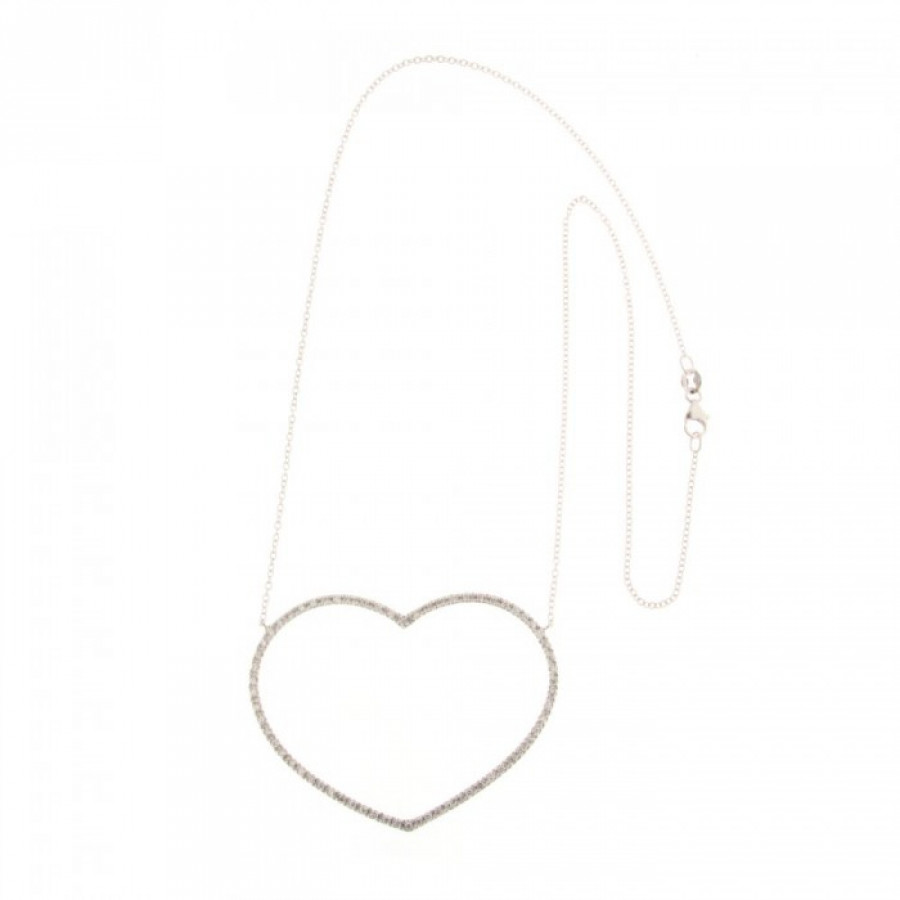 Collana in oro bianco con cuore a filo di diamanti 0.42 kt. cm 3 larghezza x 2 altezza