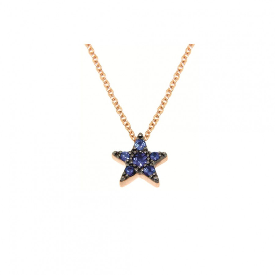 Collana con Stella a lastra in oro giallo 18k e zaffiri blu