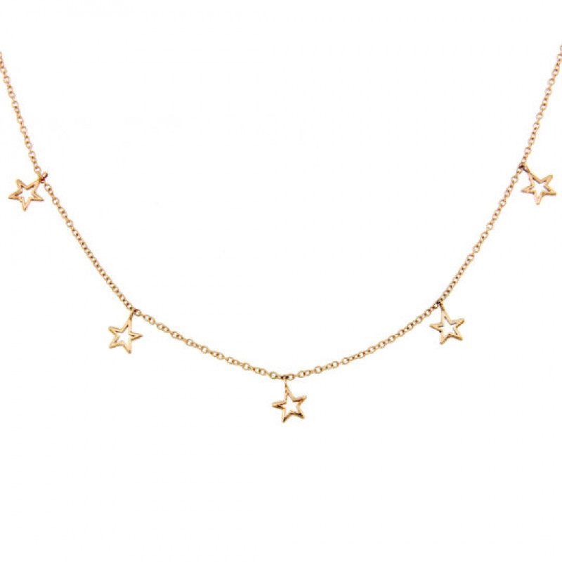 Collana in oro giallo 18k con 5 ciondoli Stelle a filo, peso 2.12 gr.