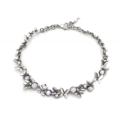 Il volo della farfalla si fa gioiello contemporaneo. Un elegante connubio fra l'argento brunito e le delicate nuance rosa delle pietre cabochon danno vita alla collana Butterfly. La lavorazione a mano della cera si percepisce in ogni dettaglio di questo affascinante gioiello. Materia, luce e colore.