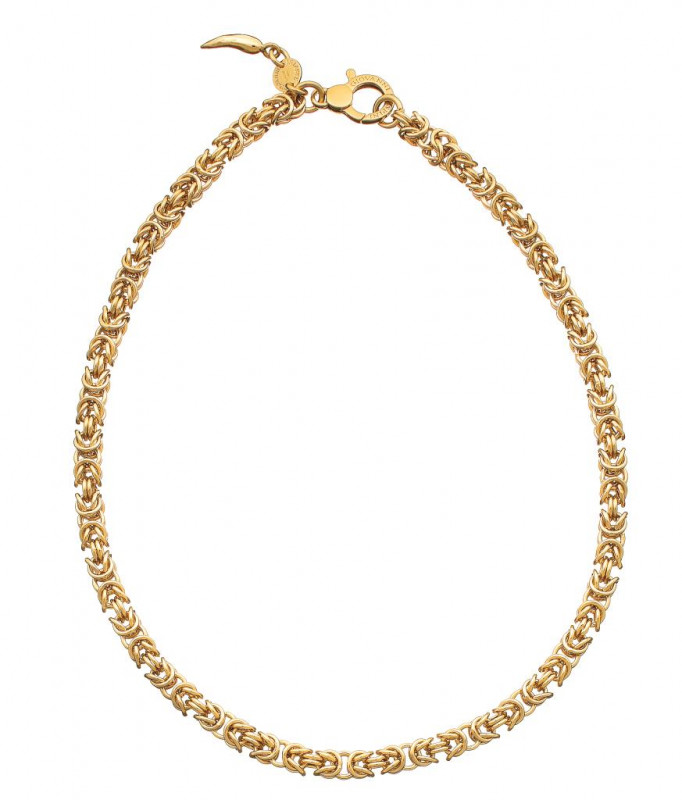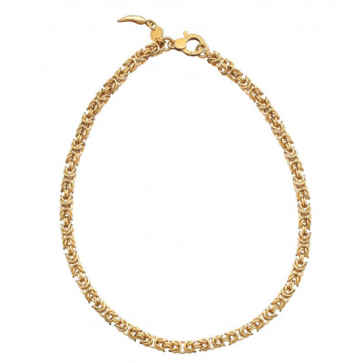 La collana Mini Bizantina d'argento in bagno d'oro racconta le forme più eleganti della nostra tradizione contemporanea. Una catena classica, un evergreen senza tempo che diviene gioiello dai riflessi caldi e luminosi. Legami infiniti di bellezza.