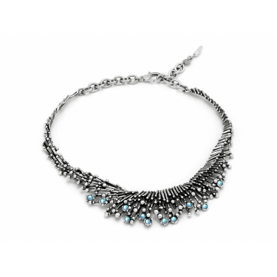 La collana Fireworks è una preziosa esplosione di colore grazie all'unione dell'argento brunito con i quarzi mystic effetto arcobaleno. Una collana luminosa pronta ad avvolgere e impreziosire il collo della donna più raffinata. Realizzata a mano in Italia con elementi modellati, si presenta con la chiusura con moschettone con maglie di regolazione.