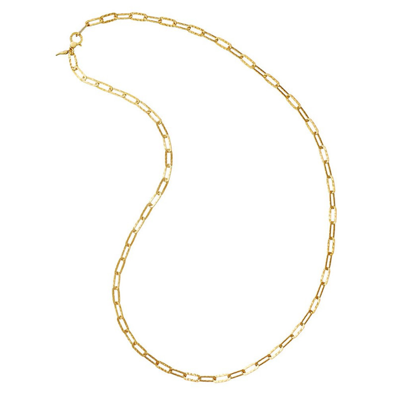 Argento che si fa luce. La collana Hope, leggera ed elegante, nasce da una catena artigianale martellata a mano. Grazie alla texture particolarissima, questo gioiello risplende quasi di luce propria. La lunghezza di 90 centimetri permette sia un indosso lungo in stile chanel, che un idosso a doppio giro, a incorniciare il volto.