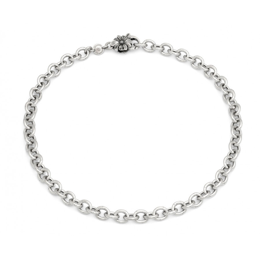 Questa raffinata collana in argento brunito si distingue per la chiusura-decoro, a forma di margherita, un evergreen della Maison Giovanni Raspini, in versione double face. Un gioiello semplice, ma di grande eleganza. Realizzata a mano in azienda.