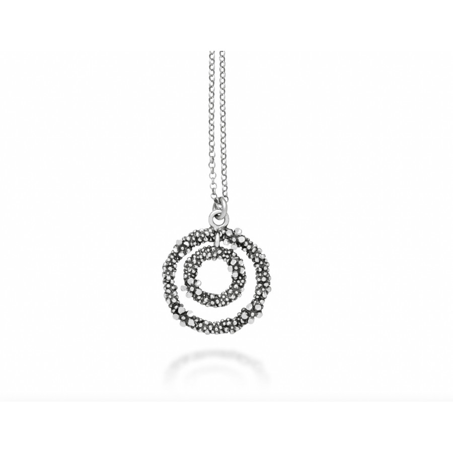 Il pendente Millefiori è creato con la tecnica denominata "diamantatura" che conferisce un effetto scintillante ai minuscoli e graziosi petali in argento che contrastano la base brunita e la catena. Luminoso ed elegante è perfetto da indossare in ogni occasione. La chiusura è con moschettone.