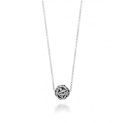 Leggerezza preziosa che si fa gioiello, argento contemporaneo per uno stile unico. Giovanni Raspini crea questa collana unendo una boule a tema intrecci, ad una catena di 45 centimetri sempre in argento. Realizzata a mano nella nostra azienda nel cuore della Toscana.