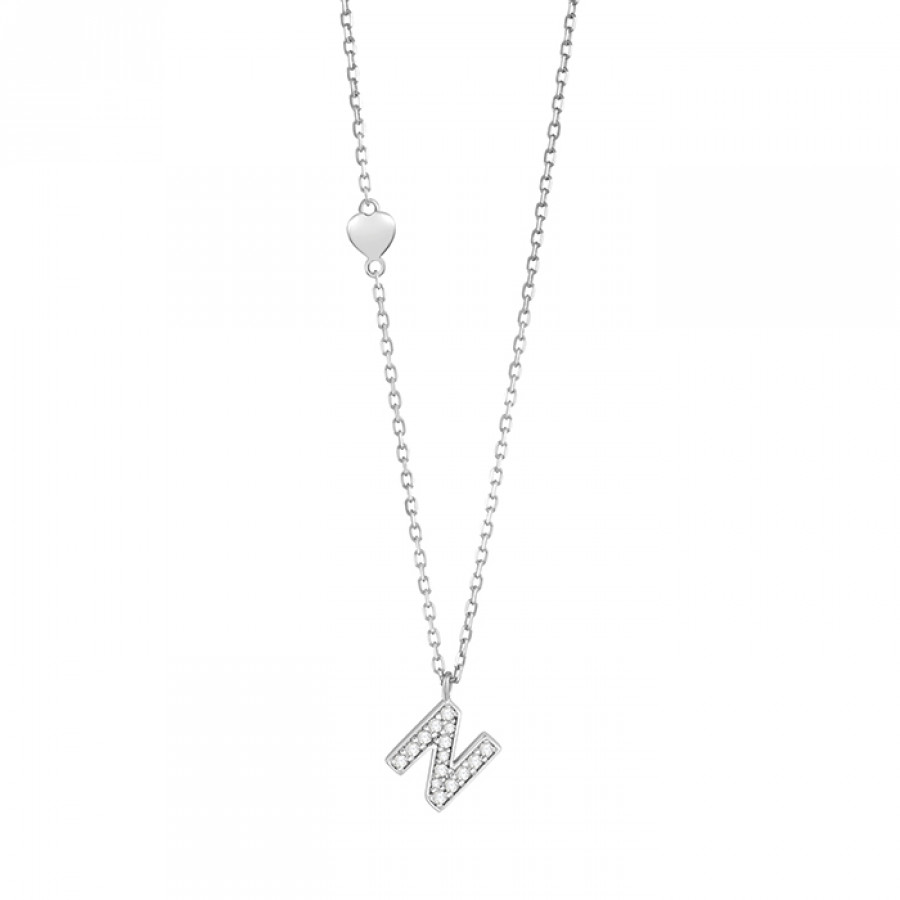Collana N in oro bianco con diamanti, della collezione Be Happy di Salvini.