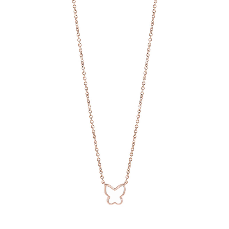 Collana in oro rosa e hybrid ceramica bianca con Farfalla