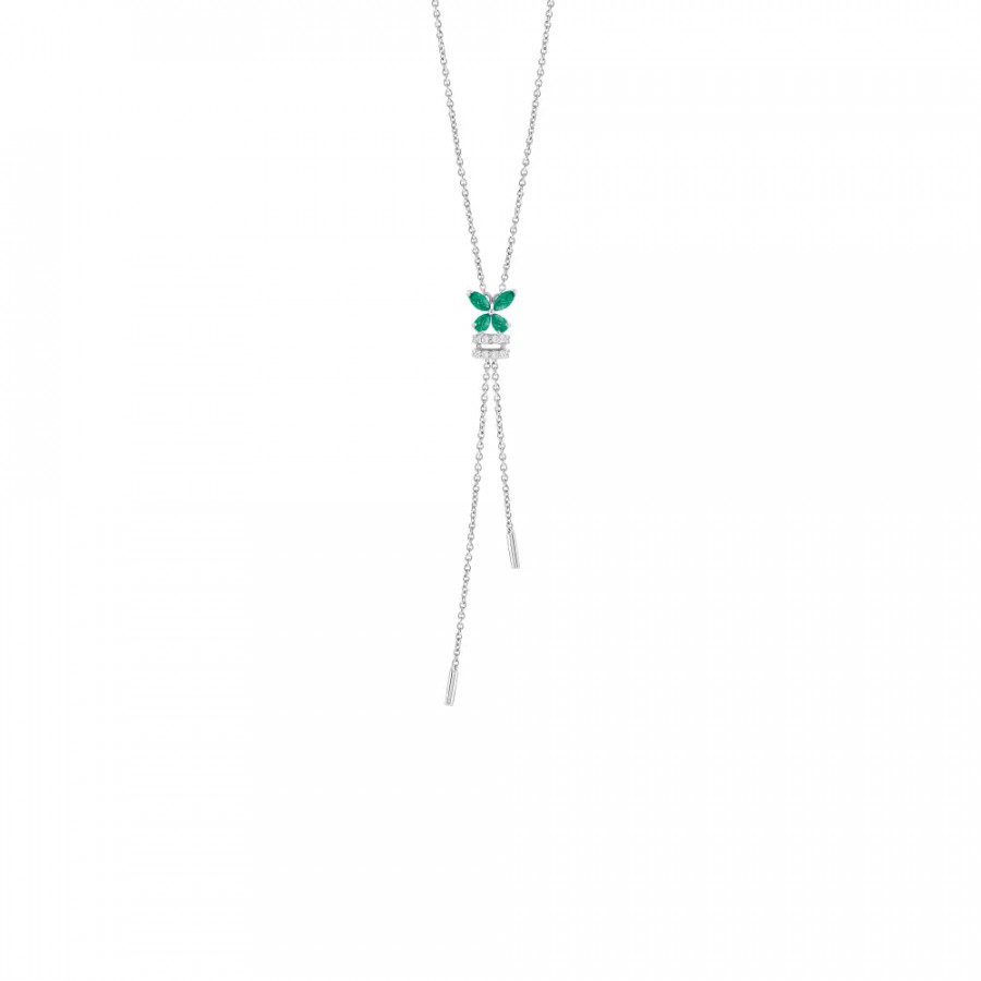 Collana Salvini in oro bianco con diamanti e smeraldi, della collezione Libera.