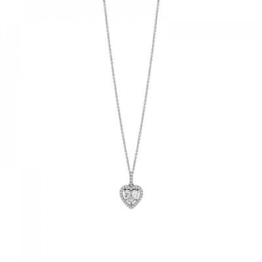 Collana in oro bianco e diamanti taglio cuore.