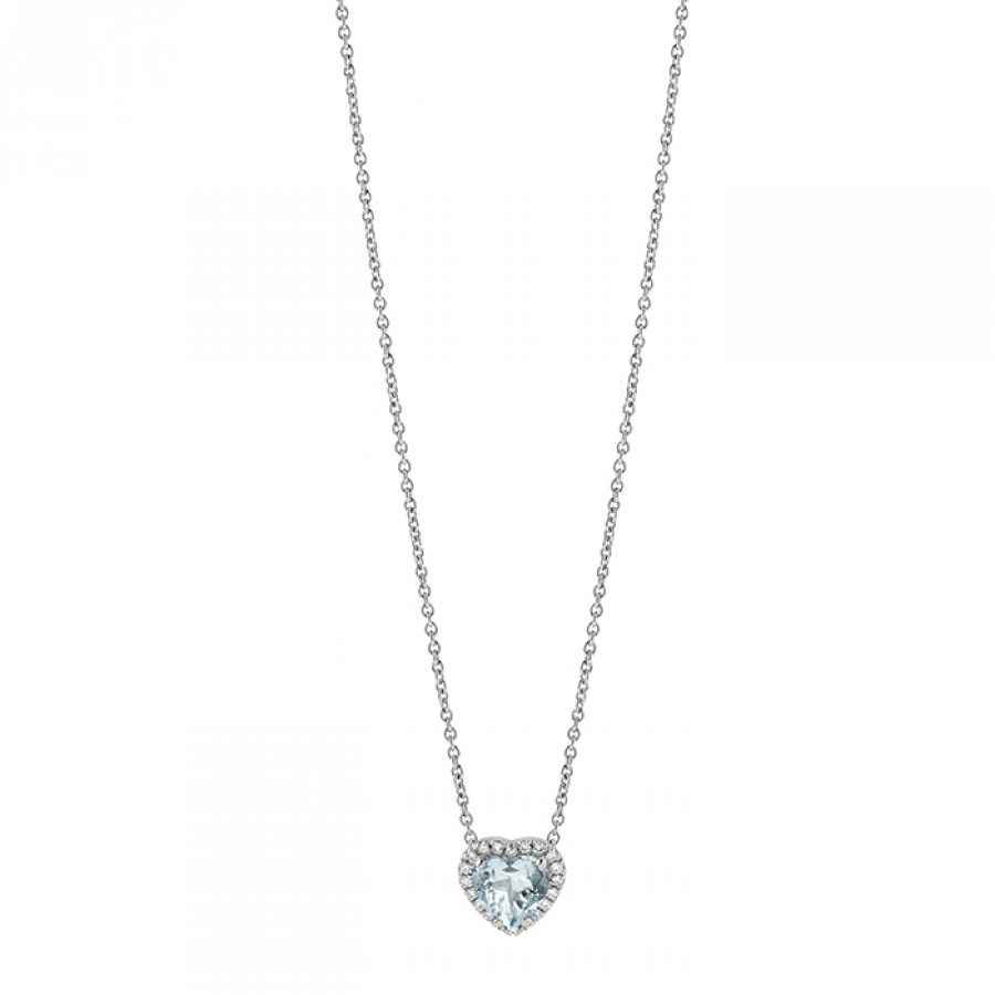 Collana Sorrento Cuore in oro bianco con diamanti e acquamarina