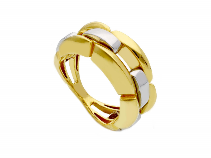 Anello in oro giallo e bianco maglia catena grumetta 6,95 g