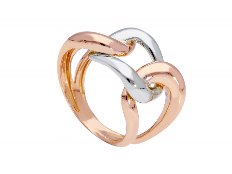 Anello donna in oro rosa e oro bianco maglia catena grumetta