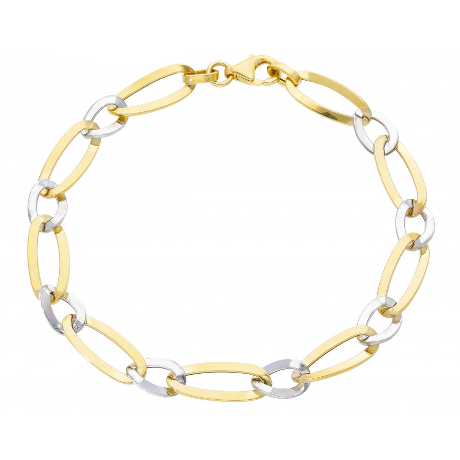 Bracciale donna in oro giallo e oro bianco maglia catena grumetta