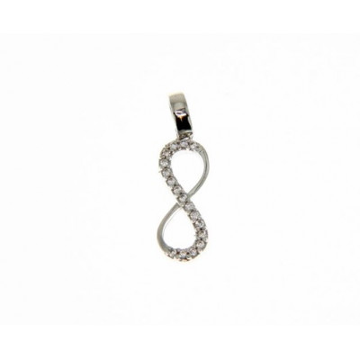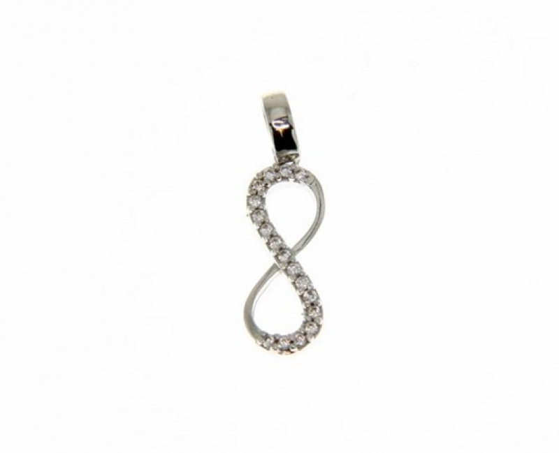 Ciondolo in oro bianco e zirconi 18kt con soggetto Infinito peso 1.1 g.