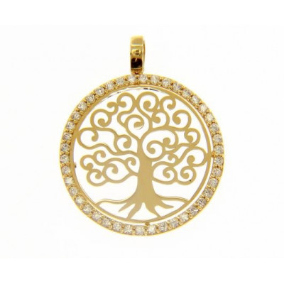 Ciondolo albero della vita in oro giallo 18kt Zirconi peso 2.7 g