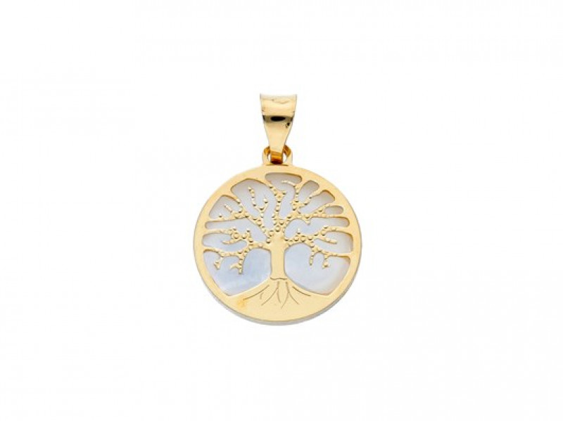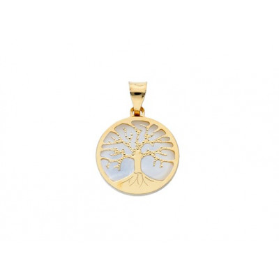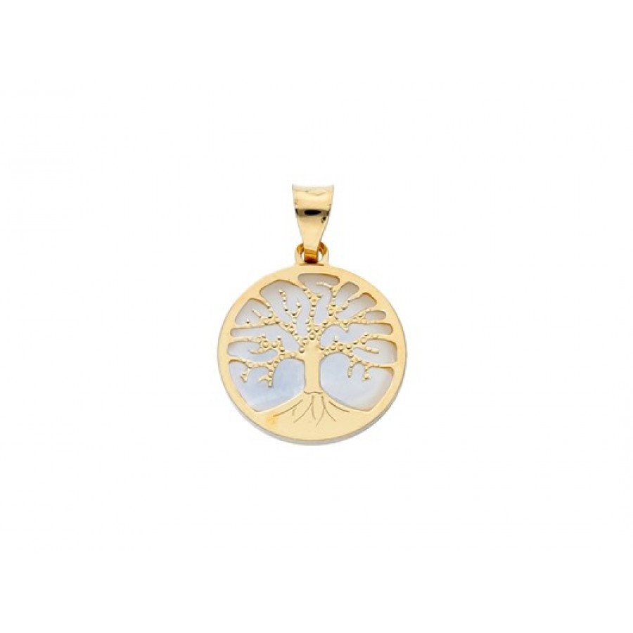 Ciondolo albero della vita a forma circolare in oro giallo e madreperla peso 1.2 g.