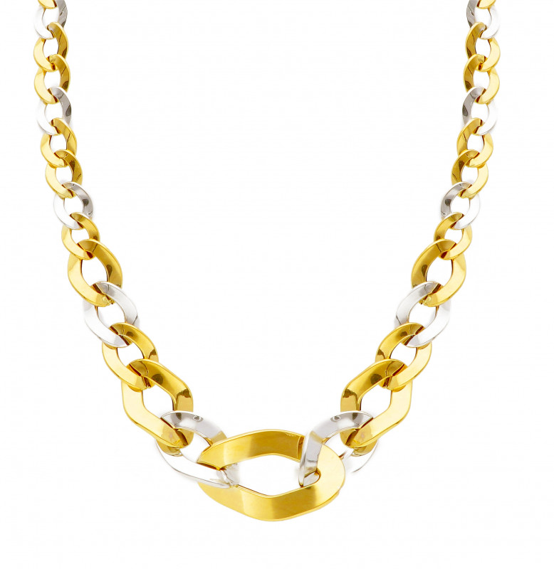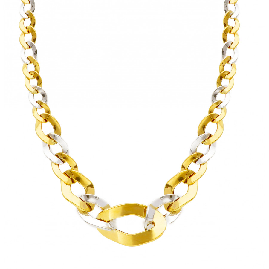 Girocollo in oro giallo e oro bianco maglia catena grumetta 12,40 g